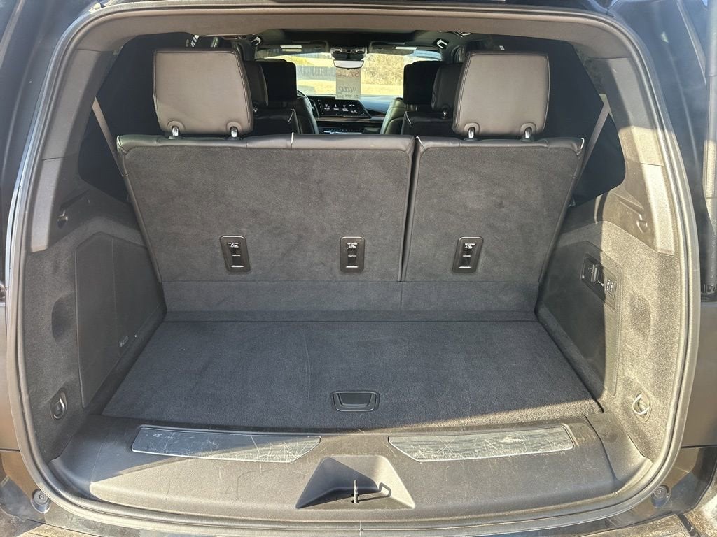 Black Raven Premium Luxury 6.2L V8 4WD Bluetooth®, 16.9 Diagonal OLED Infotainment Screen, 19 Speakers, 1st 2nd & 3rd Row All-Weather Floor Mats (LPO), 2-Presets Memory For Driver Seat Adjuster, 3.23 Axle Ratio, 3rd row seats: split-bench, 4-Way Power Driver Lumbar Seat Adjuster, 4-Way Power Front Passenger Lumbar Seat Adjuster, 4-Wheel Disc Brakes, 8-Way Power Driver Seat Adjuster, 8-Way Power Front Passenger Seat Adjuster, ABS brakes, Adaptive Cruise Control, Air Conditioning, Air Ionizer, Air Ride Adaptive Suspension, AKG Studio 19-Speaker Audio System, AM/FM radio: SiriusXM with 360L, Apple CarPlay/Android Auto, Audio memory, Auto High-beam Headlights, Auto tilt-away steering wheel, Auto-dimming door mirrors, Auto-dimming Rear-View mirror, Automatic Emergency Braking, Automatic Seat Belt Tightening, Automatic temperature control, Brake assist, Bumpers: body-color, Compass, Delay-off headlights, Door Lock & Latch Shields, Driver Assist Tech Package, Driver vanity mirror, Dual front impact airbags, Dual front side impact airbags, Electronic Cruise Control w/Set & Resume Speed, Electronic Limited-Slip Differential, Electronic Stability Control, Emergency communication system: OnStar and Cadillac connected services capable, Enhanced Automatic Emergency Braking, Enhanced Automatic Parking Assist, Four wheel independent suspension, Front anti-roll bar, Front Bucket Seats, Front Center Armrest w/Storage, Front dual zone A/C, Front License Plate Bracket, Front reading lights, Fully automatic headlights, Garage door transmitter, Glass Breakage Sensor, HD Radio, Heads-Up Display, Heated & Ventilated Driver & Front Passenger Seats, Heated door mirrors, Heated Driver & Front Passenger Seats, Heated front seats, Heated rear seats, Heated steering wheel, Hitch Guidance w/Hitch View, Illuminated entry, Illuminating Front & Rear Sill Plates, In-Vehicle Trailering System App, Integrated Trailer Brake Controller, Lane Change Alert w/Side Blind Zone Alert, Lane Keep Assist w/Lane Departure Warning, Leather Seating Surfaces w/Mini-Chevron Perf Inserts, Leather steering wheel, Low tire pressure warning, Magnetic Ride Control Suspension, Mechanical Limited-Slip Differential, Memory seat, Navigation System, Night Vision, Occupant sensing airbag, Outside temperature display, Overhead airbag, Overhead console, Panic alarm, Passenger door bin, Passenger vanity mirror, Performance Package, Power door mirrors, Power driver seat, Power Liftgate, Power moonroof, Power Panoramic Tilt-Sliding Sunroof, Power passenger seat, Power steering, Power windows, Power-Retractable Assist Steps, Preferred Equipment Group 1SB, Premium Smooth Ride Suspension, Radio data system, Radio: AM/FM/SiriusXM w/Navigation, Rain sensing wipers, Rear air conditioning, Rear anti-roll bar, Rear Camera Mirror, Rear Camera Mirror Washer, Rear Cross Traffic Alert, Rear reading lights, Rear Seat Entertainment System, Rear window defroster, Rear window wiper, Reconfigurable Full-Color Head-Up Display, Remote keyless entry, Reverse Automatic Braking, Roof rack: rails only, Running Board Assist Steps, Security system, SiriusXM w/360L, Soft Closing Front & Rear Doors, Speed control, Split folding rear seat, Spoiler, Steering wheel memory, Steering wheel mounted audio controls, Tachometer, Teen Driver, Telescoping steering wheel, Theft-Deterrent Alarm System, Tilt steering wheel, Traction control, Trailer Side Blind Zone Alert, Trip computer, Turn signal indicator mirrors, Variably intermittent wipers, Vehicle Inclination Sensor, Vehicle Interior Movement Sensor, Ventilated front seats, Voltmeter, Wheels: 22 14-Spoke Alloy w/Polished Finish, Wireless Apple CarPlay/Wireless Android Auto.