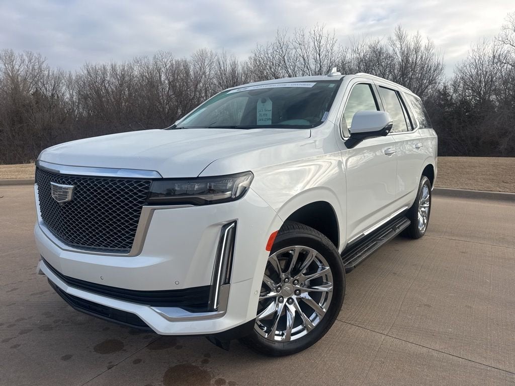 Crystal White Tricoat Premium Luxury Platinum 6.2L V8 AWD Certified. CARFAX One-Owner. Bluetooth®, 16.9 Diagonal OLED Infotainment Screen, 2-Presets Memory For Driver Seat Adjuster, 3 Years of OnStar & Connected Services Plan, 3.23 Axle Ratio, 3rd row seats: split-bench, 4-Way Power Driver Lumbar Seat Adjuster, 4-Way Power Front Passenger Lumbar Seat Adjuster, 4-Wheel Disc Brakes, 8-Way Power Driver Seat Adjuster, 8-Way Power Front Passenger Seat Adjuster, A/V remote, ABS brakes, Adaptive Cruise Control, Air Conditioning, Air Ride Adaptive Suspension, AKG Studio Reference 36-Speaker Audio System, Alloy wheels, AM/FM radio: SiriusXM with 360L, Apple CarPlay/Android Auto, Audio memory, Auto High-beam Headlights, Auto tilt-away steering wheel, Auto-dimming door mirrors, Auto-dimming Rear-View mirror, Automatic Seat Belt Tightening, Automatic temperature control, Brake assist, Bright Sport Mesh Grille (LPO), Bumpers: body-color, Compass, Delay-off headlights, Door auto-latch, Door Lock & Latch Shields, Driver door bin, Driver vanity mirror, Dual front impact airbags, Dual front side impact airbags, Electronic Limited-Slip Differential, Electronic Stability Control, Emergency communication system: OnStar and Cadillac connected services capable, Enhanced Automatic Emergency Braking, Enhanced Automatic Parking Assist, Exterior Parking Camera Rear, Floor Console w/Covered Storage, Four wheel independent suspension, Front anti-roll bar, Front Auxiliary 12-volt Power Outlet, Front Bucket Seats, Front Center Armrest w/Storage, Front dual zone A/C, Front License Plate Bracket, Front reading lights, Full Semi-Aniline Leather Seat Trim, Fully automatic headlights, Garage door transmitter, Genuine wood console insert, Genuine wood dashboard insert, Genuine wood door panel insert, Glass Breakage Sensor, HD Radio, Headphones, Heads-Up Display, Heated & Ventilated Driver & Front Passenger Seats, Heated door mirrors, Heated Driver & Front Passenger Seats, Heated front seats, Heated rear seats, Heated steering wheel, Hitch Guidance w/Hitch View, Illuminated Cargo Sill Plate (LPO), Illuminated entry, Illuminating Front & Rear Sill Plates, Integrated Trailer Brake Controller, Leather steering wheel, Low tire pressure warning, Magnetic Ride Control Suspension, Memory seat, Monochrome Cadillac Emblems (LPO), Navigation System, Not Equipped w/2nd Row Express-Up Window Control, Occupant sensing airbag, Outside temperature display, Overhead airbag, Overhead console, Panic alarm, Passenger door bin, Passenger vanity mirror, Platinum Interior Trim, Power door mirrors, Power driver seat, Power Liftgate, Power Lumbar Massage Driver Seat, Power Lumbar Massage Front Passenger Seat, Power moonroof, Power Panoramic Tilt-Sliding Sunroof, Power passenger seat, Power steering, Power windows, Preferred Equipment Group 1SG, Radiant Package (LPO), Radio data system, Radio: AM/FM w/Navigation, Rain sensing wipers, Rear air conditioning, Rear anti-roll bar, Rear audio controls, Rear Camera Mirror, Rear Camera Mirror Washer, Rear Cross Traffic Alert, Rear reading lights, Rear Seat Entertainment System, Rear window defroster, Rear window wiper, Reconfigurable Full-Color Head-Up Display, Remote keyless entry, Reverse Automatic Braking, Running Board Assist Steps, Security system, SiriusXM w/360L, Smart Trailer Integration Indicator, Soft Closing Front & Rear Doors, Speed control, Split folding rear seat, Spoiler, Steering wheel memory, Steering wheel mounted audio controls, Super Cruise, Tachometer, Teen Driver, Telescoping steering wheel, Theft-Deterrent Alarm System, Tilt steering wheel, Touring Package, Traction control, Trailer Side Blind Zone Alert, Trip computer, Turn signal indicator mirrors, Variably intermittent wipers, Vehicle Inclination Sensor, Vehicle Interior Movement Sensor, Ventilated front seats, Voltmeter, Wheel Locks, Wheels: 22 10-Spoke Polished Alloy, Wheels: 22 12-Spoke Chrome Alloy (LPO), Wheels: 22 Interim (LPO), Wireless Apple CarPlay/Wireless